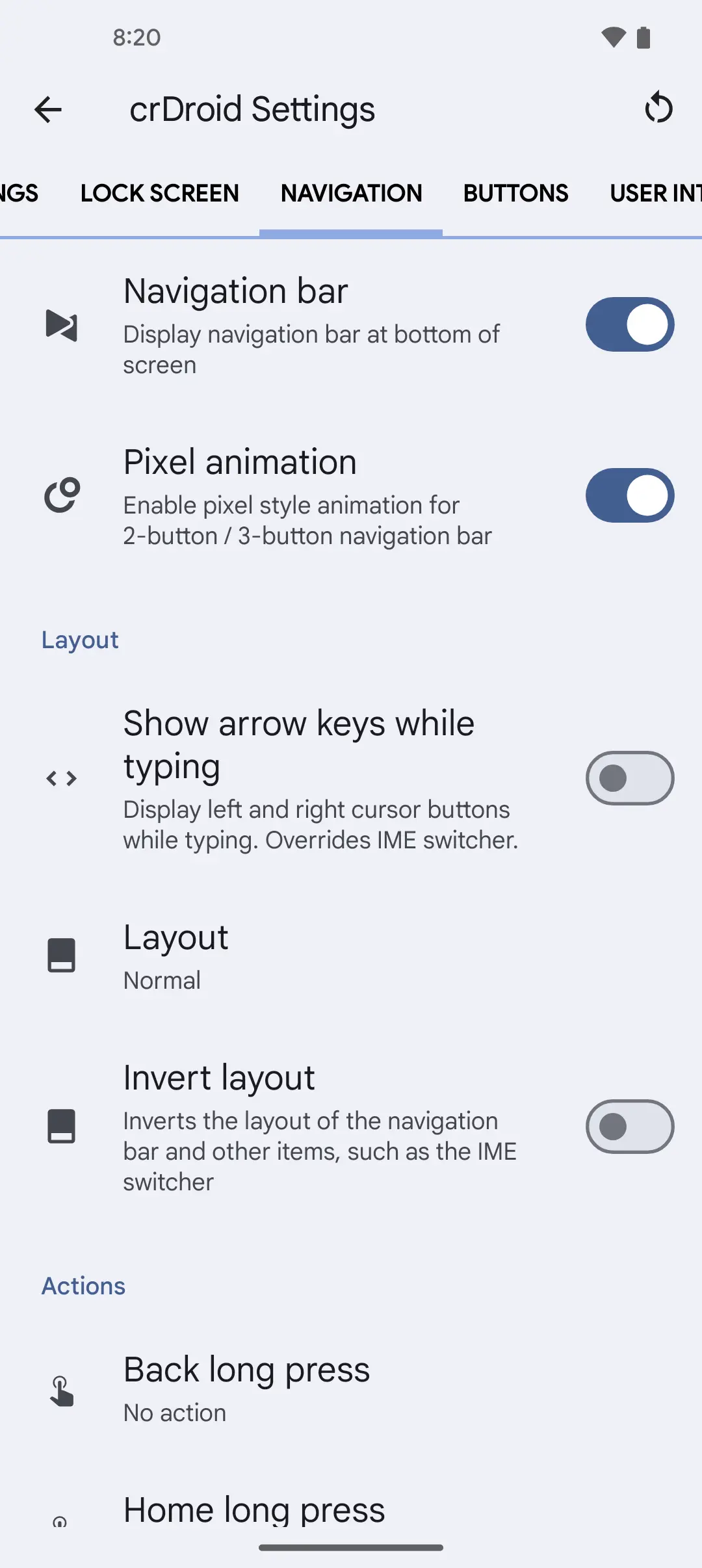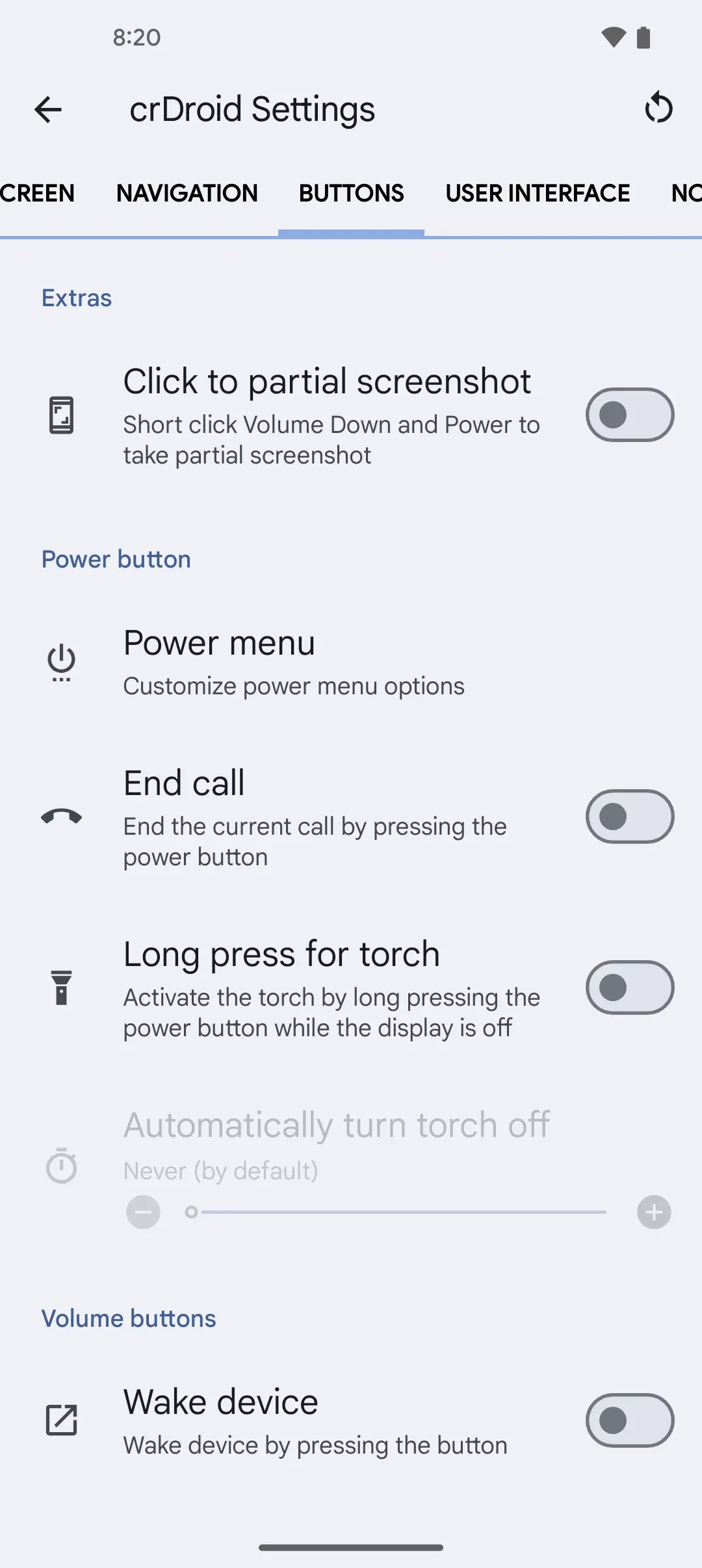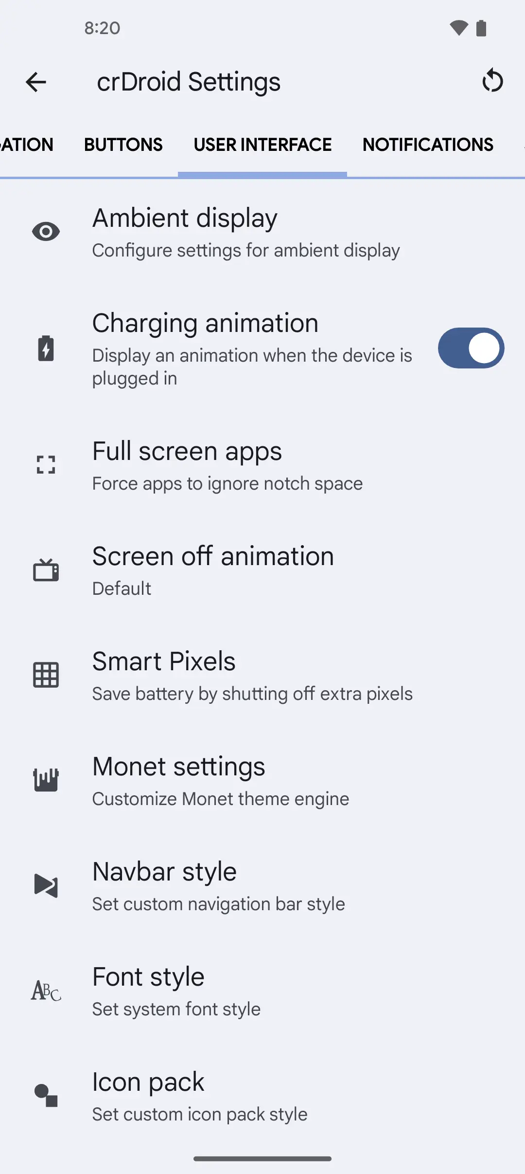 Some crDroid settings screenshots so you know what you can customize on the go