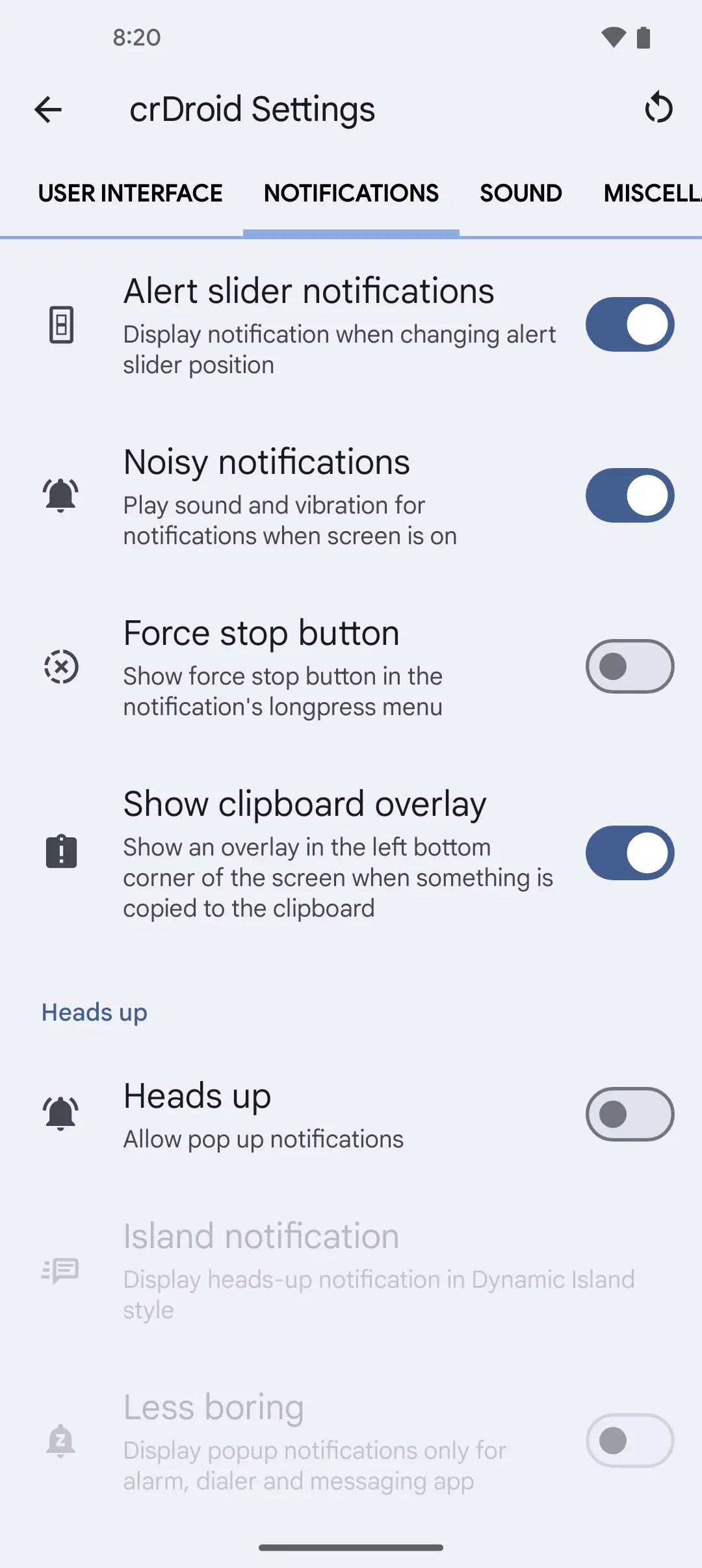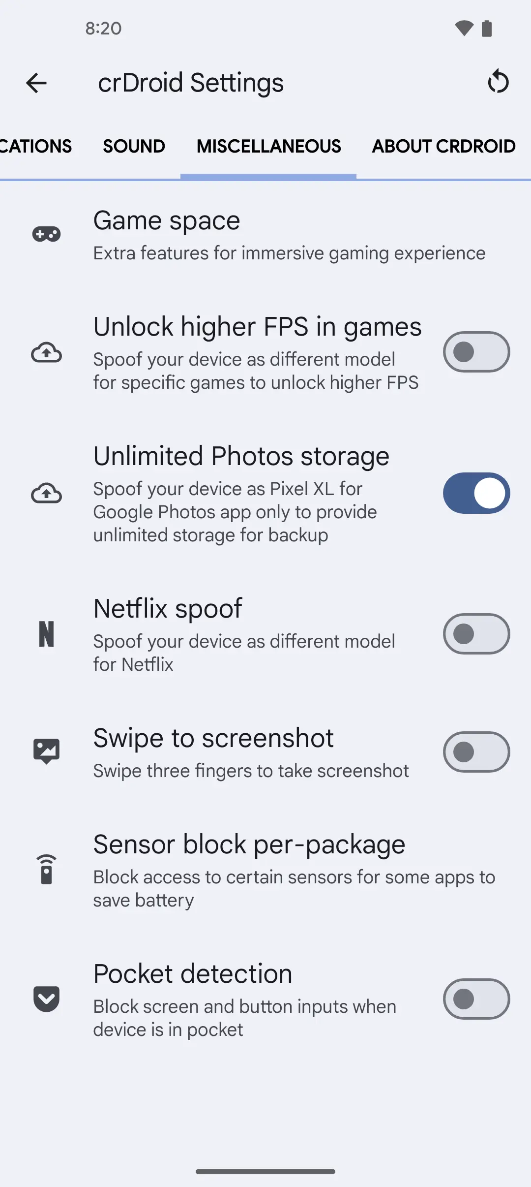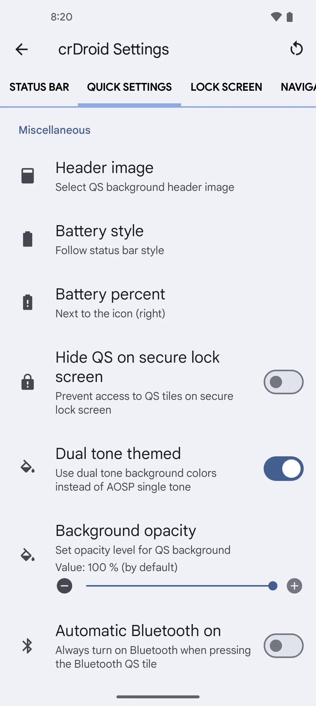 Some crDroid settings screenshots so you know what you can customize on the go